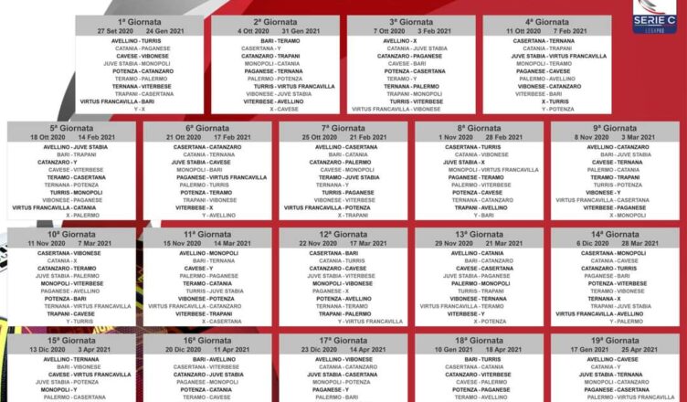 E’ stato diramato il calendario del girone C di Serie C; ecco tutte le date che coinvolgono le sei formazioni campane presenti nel girone: