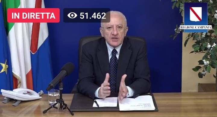 Nella consueta diretta del Venerdì, il governatore della Campania Vincenzo De Luca, ha annunciato che da lunedì la Campania sarà in zona rossa. Ecco le parole del presidente della giunta regionale: ” Anche oggi 2500 contagi, servono misure severe. Paghiamo la rilassatezza dei cittadini e l’ alta contagiosità delle varianti. Gli ospedali sono in sofferenza.”