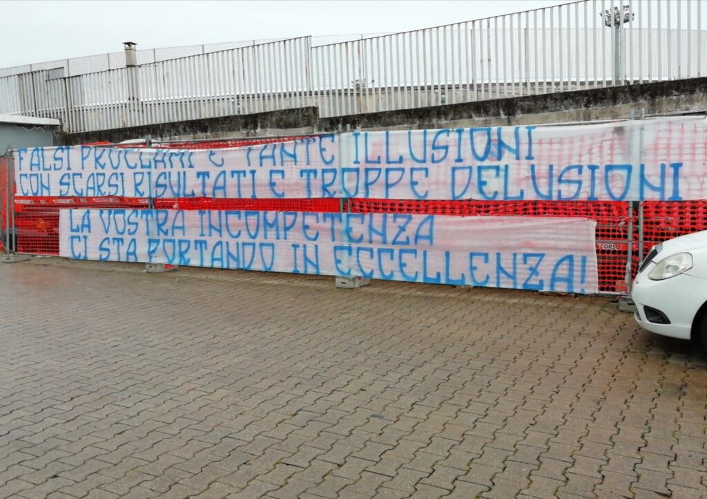 Portici. All’esterno del San Ciro, in vista del match tra Portici e Sorrento, il tifo organizzato della cittadina vesuviana ha esposto uno striscione di contestazione nei confronti della società: