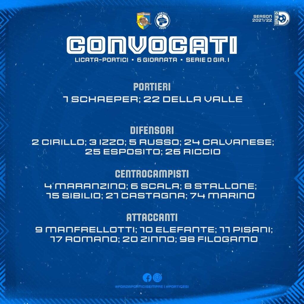 Il Portici 1906 ha reso nota, tramite i canali ufficiali, la lista dei convocati in vista dell’impegnativa trasferta di Licata, in terra sicula: