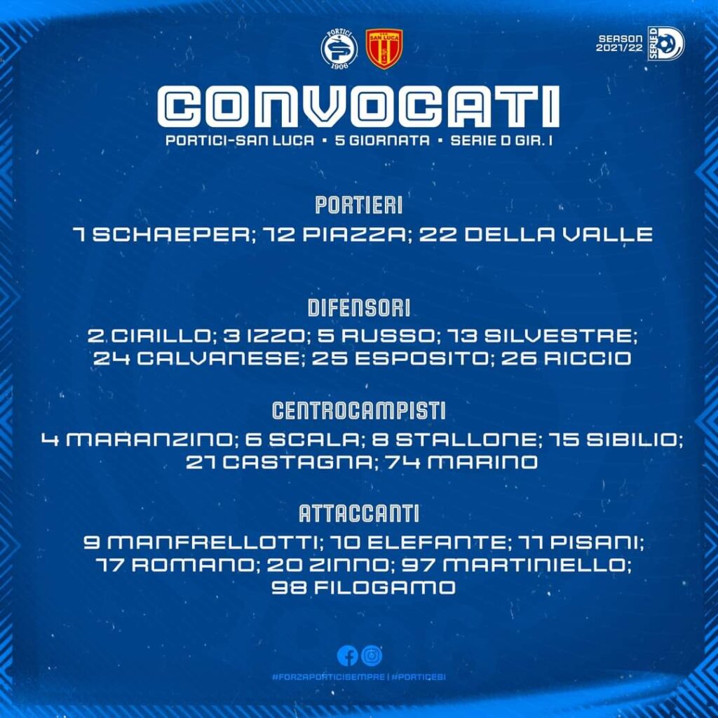 Il Portici 1906 ha reso nota la lista dei 23 convocati in vista del match contro il San Luca, valevole per la quinta giornata di serie D, girone I:
