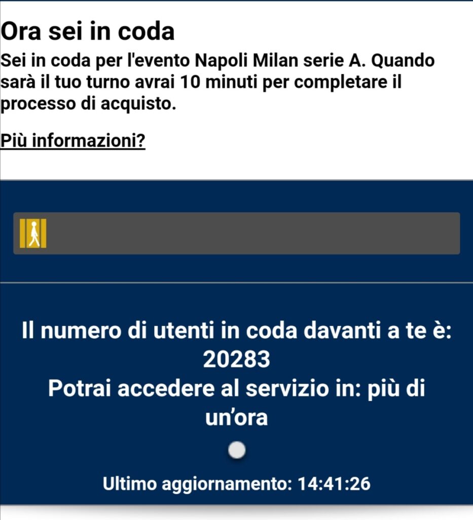 Una folla di tifosi azzurri ha inondato le tabaccherie adibite a centri di acquisto dei tagliandi, mentre il sito di vendita, ticketone, costringe i clienti ad una lunga attesa, per smaltire il grosso numero di utenti (circa 20000 collegati). Previsto il sold out.