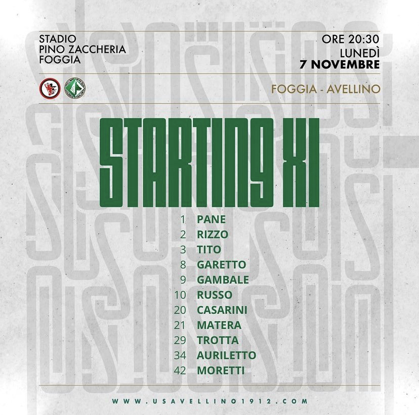 Ecco le scelte di mister Rastelli per il posticipo tra Foggia e Avellino: