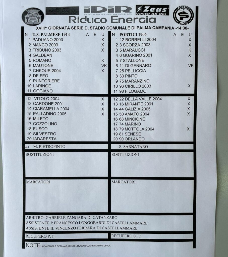 Sono state rese note le formazioni ufficiali di Palmese e Portici, impegnate nella 18ª giornata di serie D, girone G. Emergenza per Sarnataro che deve rinunciare a Riccio, con Senese ed Orlando che partono dalla panchina. Gara delicatissima per il prosieguo stagionale, da affrontare senza rinunciare alla possibilità di poter strappare punti ad una compagine che ha evidenti qualità in più: