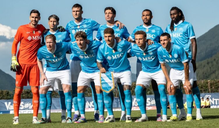 Prima uscita del Napoli in Trentino nel test amichevole con l’Arezzo. Nel primo tempo fiammata di Lucca che sfiora il palo in diagonale. Poi arriva il gol dell’Arezzo su rigore con Pattarello. Nella ripresa il Napoli preme costantemente e Neres per ben tre volte sfiora il pareggio, colpendo anche un palo in diagonale. Nei minuti finali giunge la seconda rete in contropiede dell’Arezzo con Varela. Adesso appuntamento per la seconda amichevole a Dimaro, sabato con il Catanzaro.