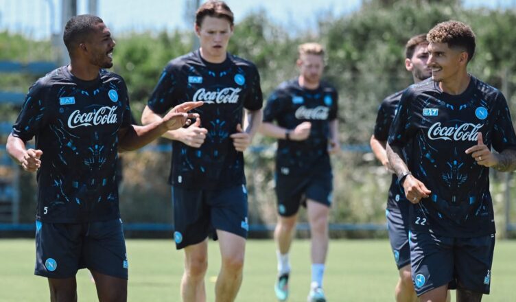 Doppia seduta per il Napoli a Castel di Sangro. Gli azzurri si sono allenati allo stadio Patini nel penultimo giorno di ritiro. Al mattino la squadra, divisa in due gruppi, ha svolto lavoro di forza e successivamente allenamento tecnico-tattico. Nel pomeriggio allenamento congiunto con il Giugliano. Domani, alle ore 18:00, l’amichevole contro l’Olympiacos a conclusione della pre-season.