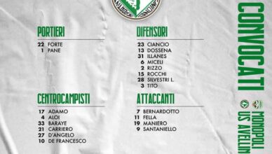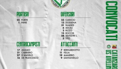 All’esito della seduta di rifinitura effettuata questo pomeriggio allo stadio “Liguori”, sono 21 i calciatori convocati dal neo tecnico Caneo in vista dell’incontro